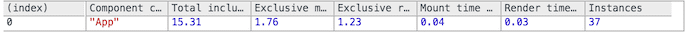 “Exclusive” times don’t include the times taken to mount the components: processing props, calling componentWillMount and componentDidMount, etc.